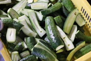 暑さのせいか、7月上旬から豊作だという八町きゅうり。